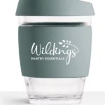 A glass reusable utility cup, comes with a silicone sleeve and a spill-proof top lid and a hole for a straw, with an extra 2 different straw hole sizes.